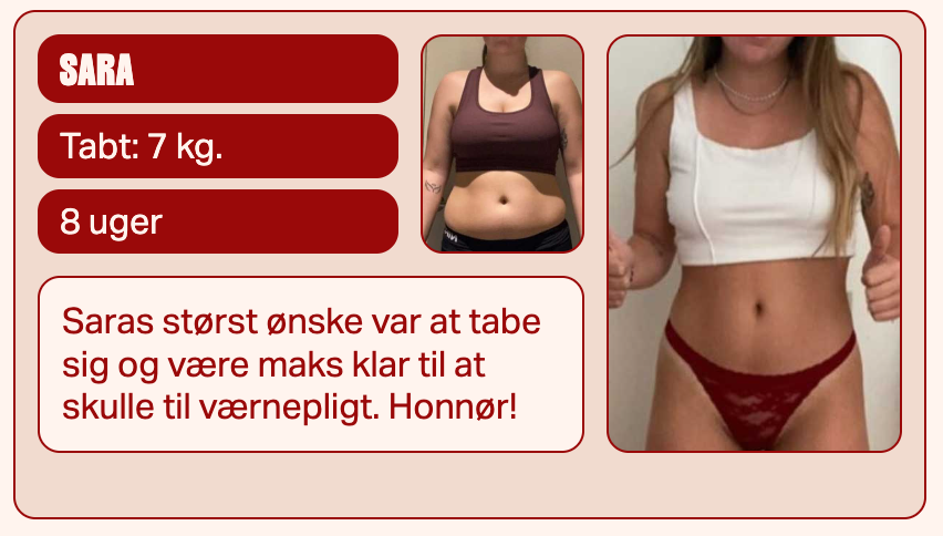 Fleksibel kostplan med alle dine livretter, realistisk træningsprogram og tæt, personlig support. En plan der passer til din hverdag, ikke omvendt.